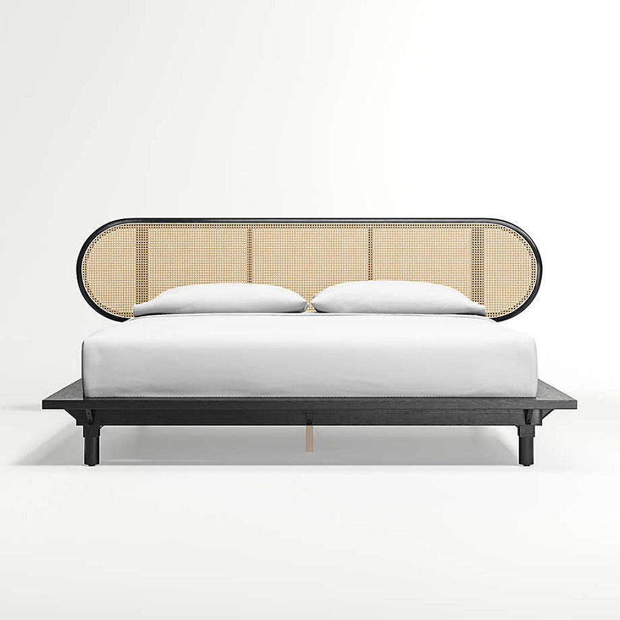 This king bed flirts with tradition in an eye-catching design that’s totally now. A frame of black-stained Mango Wood creates a sturdy platform and rounds out the dramatic lozenge-shaped headboard inset with an airy screen of woven cane. We love the interplay between the graphic lines and the warm color and woven texture of natural cane in this contemporary yet approachable bed. Create an inspired bedroom suite with other pieces from the exclusive Anise bedroom collection.