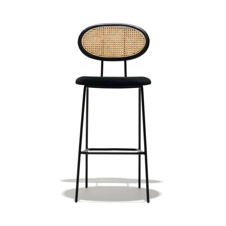 This bar stool incorporates elements with contrasting visual weight, making the Industry West Proper Bar Stool a unique addition to any dining room—residential or commercial. Part of our overall Bar Stools Collection, this specific piece’s robust caned back and velvet seat offset the chair’s thin legs in an elegant aesthetic. The Proper Bar Stool is both durable and comfortable, offering guests a chance to relax while dining in style, while the elegant velvet seat adds an air of sophistication.